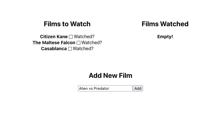 markFilmWatchedfunction below. It also needs to be able to add new films, which it can do using theaddNewFilmfunction.The